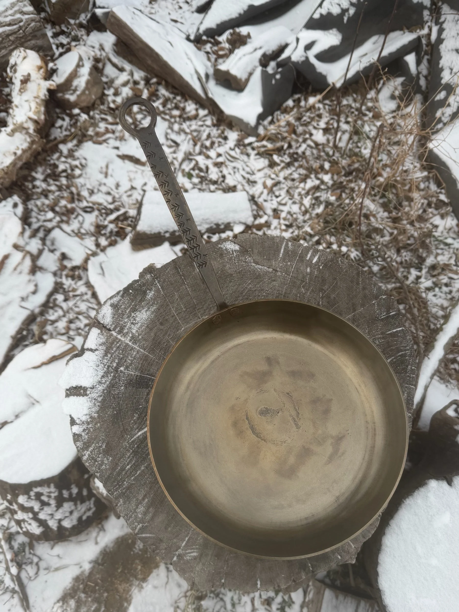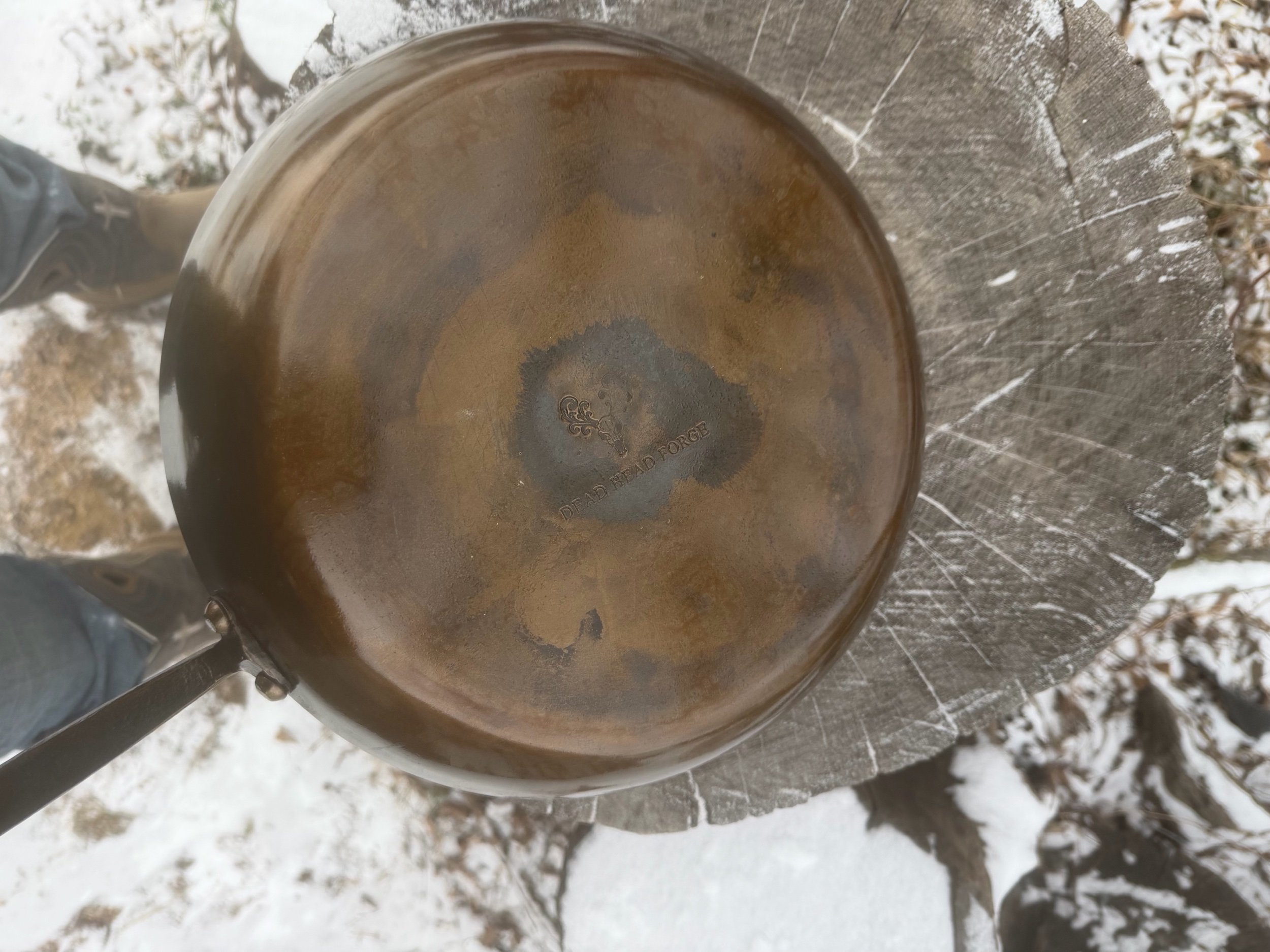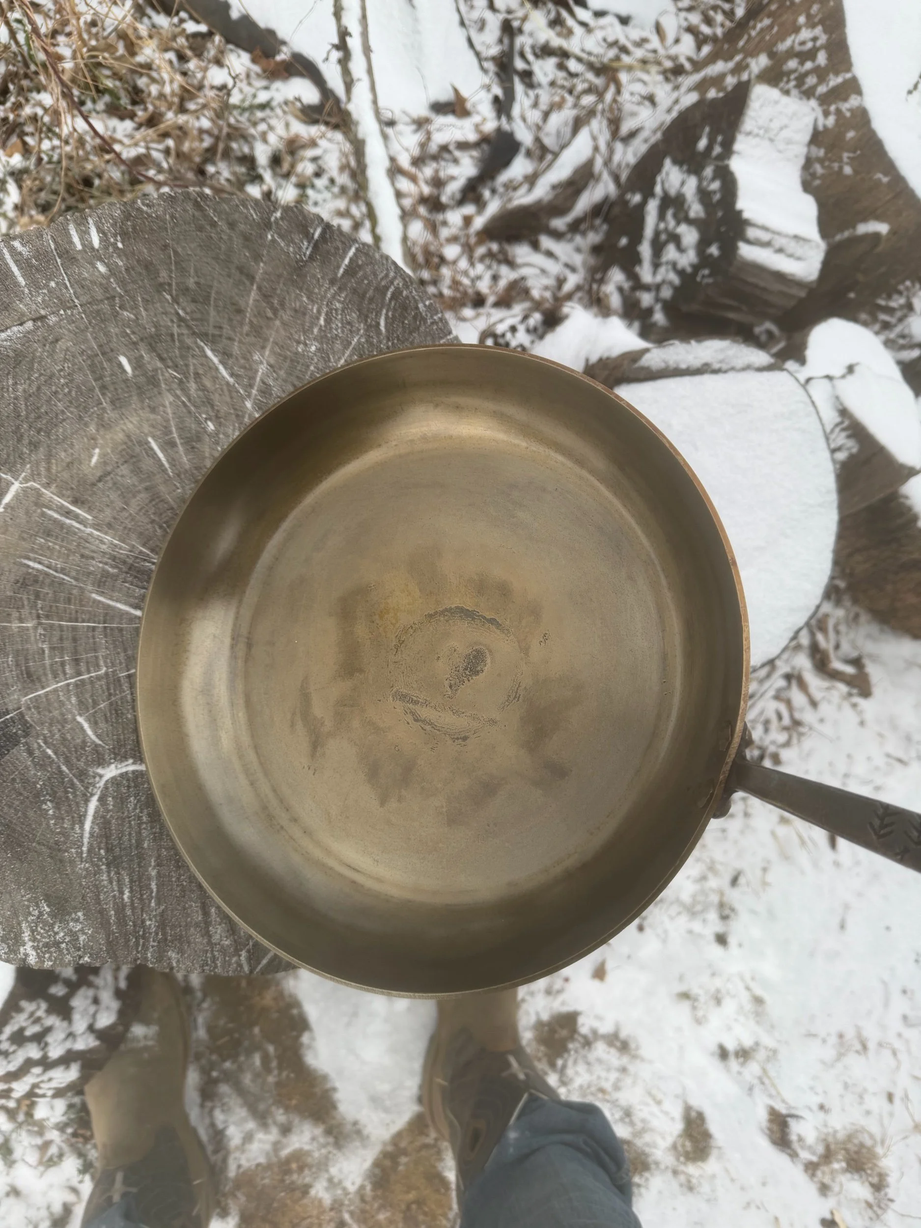 The Pan(11” wide): Is cut and pressed out of 1018 mild steel. The bottom also shows my touch mark instead of something saying made in China. It might not say “Made in Iowa” but I can promise you it’s made here.